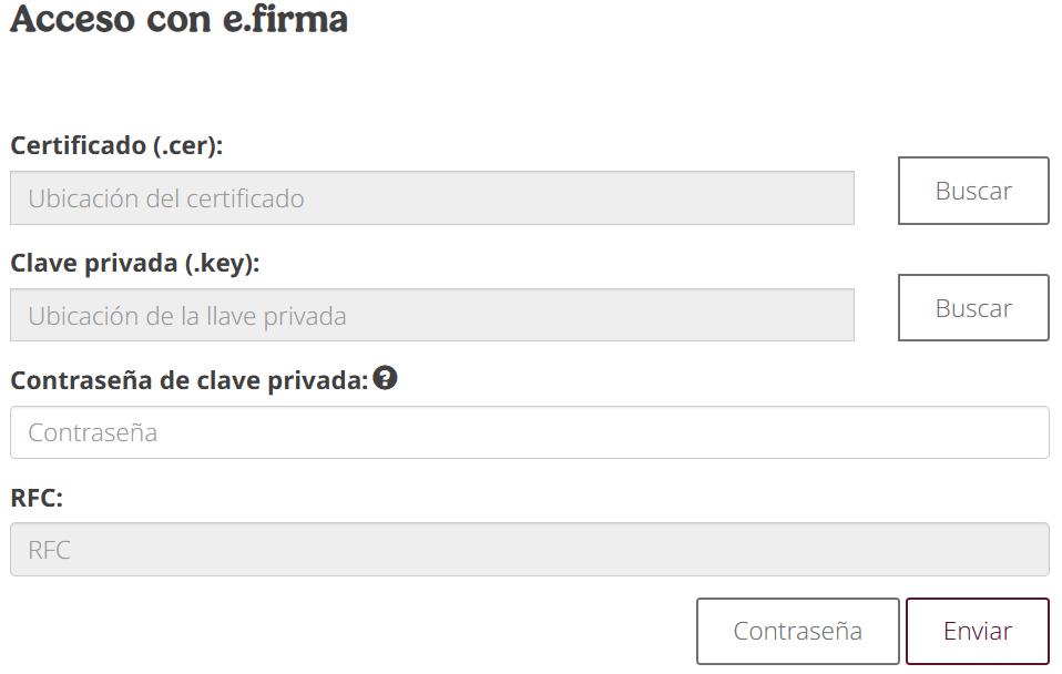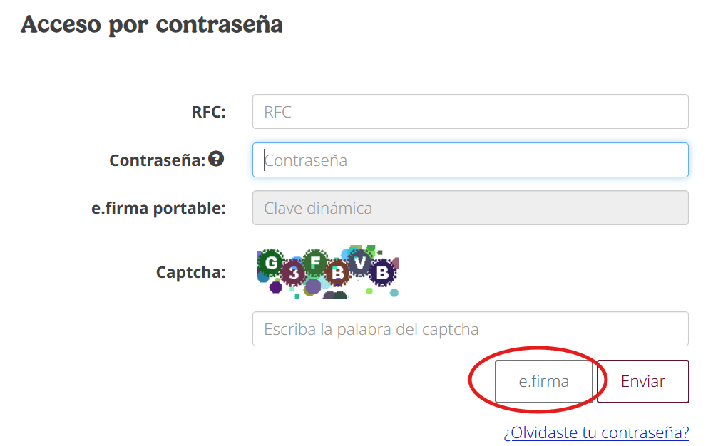 Asegúrate de usar la contraseña de la e.firma.