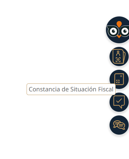 En la parte derecha de la pantalla, visualizarás el apartado “OrientaSAT” un circulo con forma de búho, al dar clic y te permite seleccionar la segunda opción “Constancia de Situación Fiscal” Se muestra imagen del apartado: